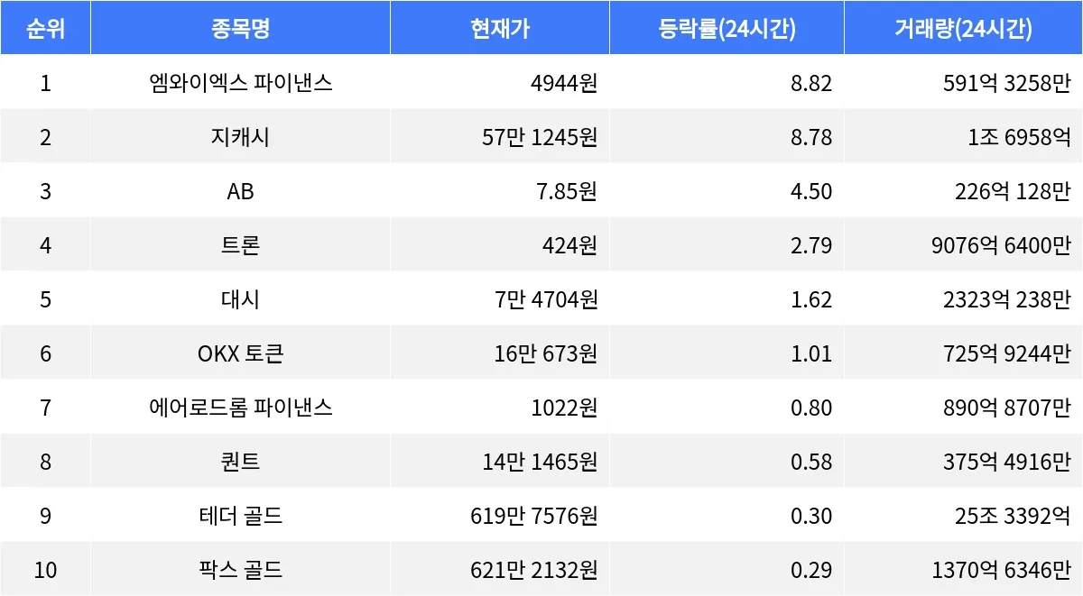 글로벌 가상자산 시황 중계 사이트 코인마켓캡(CoinMarketCap)에 따르면, 현재 암호화폐 시장에서 엠와이엑스 파이낸스가 24시간 동안 8.82% 상승하며 등락률 1위를 기록하고 있다. 엠와이엑스 파이낸스는 현재 4944원에 거래되고 있으며, 24시간 거래량은 591억 3258만에 달한다. 그러나 1시간 동안 1.77% 하락한 점을 감안할 때, 단기 상승세가 다소 둔화될 가능성도 있다.