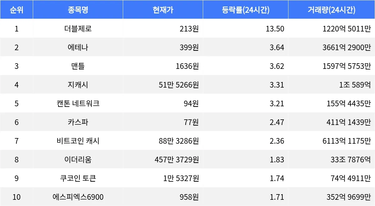 더블제로는 최근 강한 상승세를 보이며 시가총액 순위 92위를 기록하고 있다. 더블제로는 주로 안정적인 결제 시스템 구축을 목표로 하는 암호화폐로, 다양한 상업용 결제 솔루션에 활용되고 있다. 에테나는 디지털 자산의 효율적인 거래를 목표로 개발된 플랫폼으로, 다양한 블록체인 기술을 통합하여 높은 거래 속도를 제공한다.