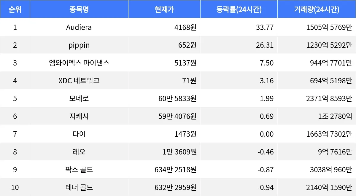 Audiera는 최근 급격한 상승세를 나타내며 주목받고 있다. Audiera는 디지털 콘텐츠 분야에서 블록체인을 활용해 아티스트와 팬 사이의 상호작용을 강화하고자 하는 플랫폼이다. Pippin은 게임 및 엔터테인먼트 분야에서 활용되는 토큰으로, 최근 상승세를 통해 시장의 주목을 받고 있다.