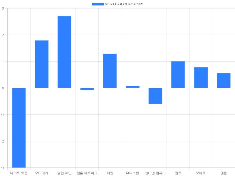 한편, 유니스왑은 24시간 동안 11.59% 상승하며 현재 9374원에 거래되고 있다. 인터넷 컴퓨터는 7.20% 상승, 퀀트는 6.46% 상승, 모네로는 3.87% 상승, 맨틀은 3.81% 상승하며 각각의 상승세를 기록 중이다.