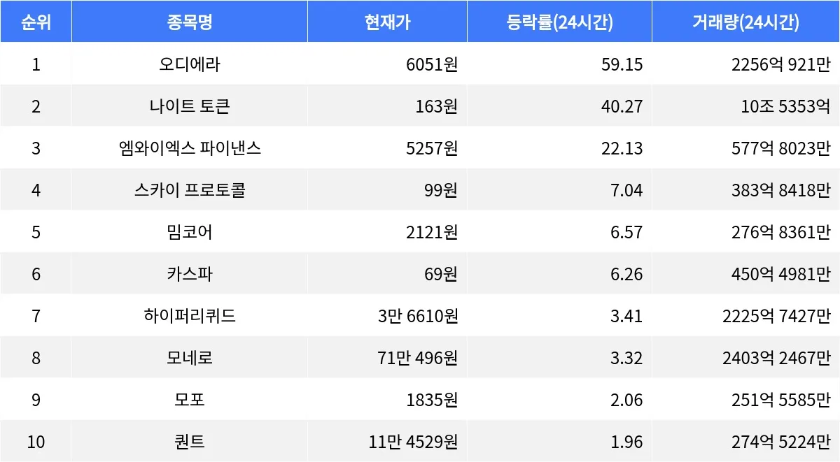 오디에라는 최근 급상승한 암호화폐로, 블록체인 기반의 금융 서비스를 제공하는 플랫폼이다. 나이트 토큰은 디지털 자산 거래를 위한 플랫폼으로, 최근 거래량의 급증과 함께 가격이 상승 중이다. 엠와이엑스 파이낸스는 스마트 계약을 활용한 금융 서비스를 제공하며, 다양한 금융 상품을 지원하는 플랫폼이다.