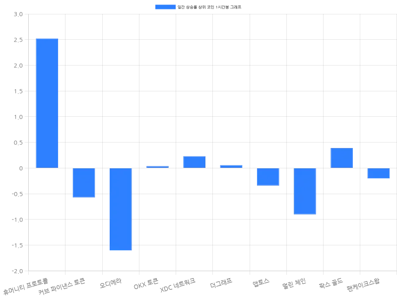 시가총액 75위의 오디에라는 24시간 동안 5.23% 상승하며 현재 5605원에 거래되고 있다. 1시간 동안 1.60% 하락했으나, 전체적인 상승세는 여전히 긍정적이다. OKX 토큰은 시가총액 36위로, 24시간 동안 4.03% 상승하며 16만 4303원에 거래되고 있다. 1시간 동안 0.04% 상승하며 강한 안정세를 보이고 있다. XDC 네트워크는 시가총액 66위로, 24시간 동안 3.53% 상승하며 현재 70원에 거래되고 있다. 1시간 동안 0.23% 상승하며 긍정적인 흐름을 유지하고 있다.