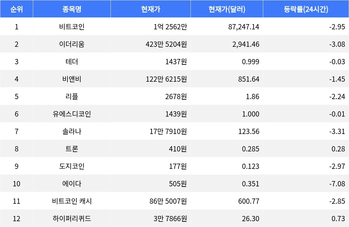 도지코인은 177원으로, 2.97% 하락했다. 도지코인은 인터넷 밈에서 영감을 받아 시작된 암호화폐로, 커뮤니티 중심의 활동을 통해 인기를 얻고 있다. 거래량은 1조 2743억원으로 나타났다.