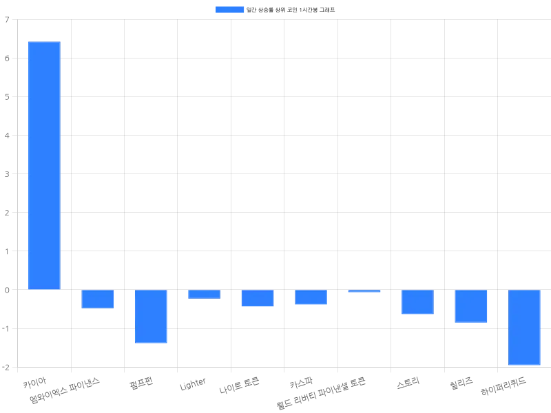 한편, 카스파는 24시간 동안 3.74% 상승하며 60원에 거래되고 있으며, 월드 리버티 파이낸셜 토큰은 3.67% 상승하며 257원에 거래되고 있다. 스토리는 3.10% 상승하며 3476원에 거래 중이고, 칠리즈는 2.86% 상승하며 75원에 거래되고 있다. 마지막으로 하이퍼리퀴드는 2.77% 상승하며 3만 3553원에 거래되고 있다.