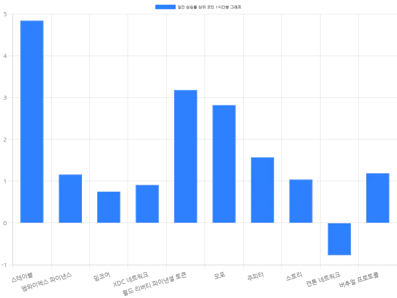 한편, 모포는 24시간 동안 3.37% 상승하며 1696원에 거래되고 있다. 주피터는 2.31% 상승해 271원에 거래되고 있으며, 스토리는 1.69% 상승해 2073원에 거래되고 있다. 캔톤 네트워크는 0.80% 상승해 261원에 거래 중이며, 버추얼 프로토콜은 0.56% 상승하며 914원에 거래되고 있다.
