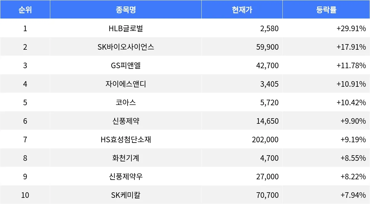 4일 장 마감 기준, HLB글로벌(003580)이 등락률 +29.91%로 1위를 차지했다. HLB글로벌의 현재가는 2,580원으로 공모가 대비 큰 폭으로 상승했다. 거래량은 7,949,284주로, 매수총잔량은 93,795주, 매도총잔량은 0주였다. PER은 -7.33, ROE는 -11.37로 나타났다. 매수세가 매도세를 압도하는 수급 구조를 보였다.
