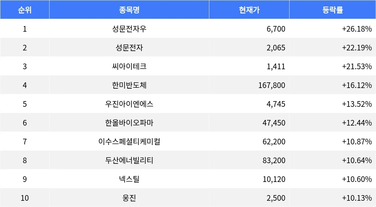 성문전자우, 성문전자 등 주요 종목 상승 주도, 수급 양극화