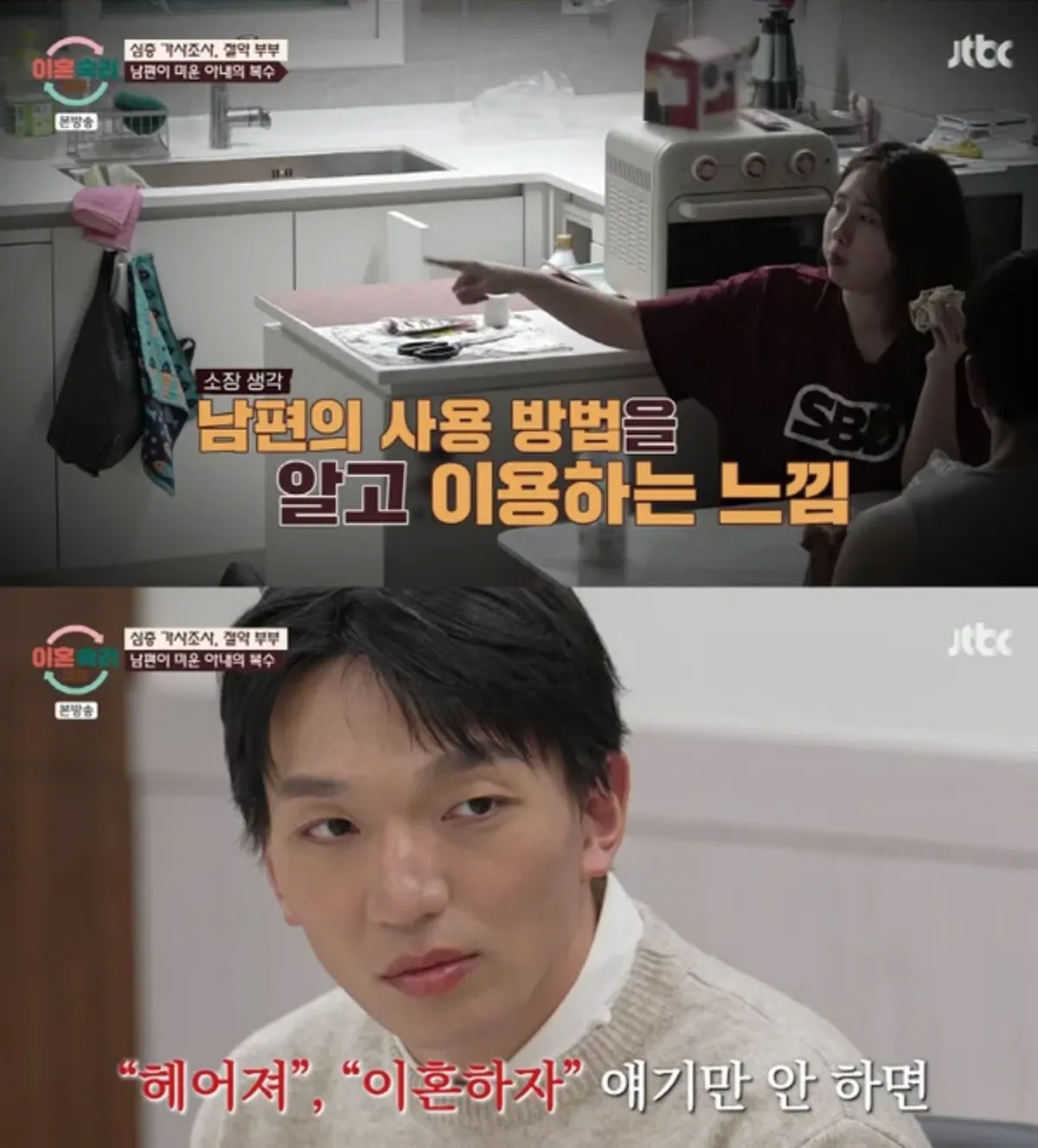 아내는 “남편에게 막대하는 이유는 ‘이혼하자’고 하지 않으면 뭐든 다 해주는 걸 알기 때문”이라고 털어놨다. 이어 “솔직히 존경할 남자였다면 이렇게 못 했을 것”이라며 자신도 알고 있는 ‘감정 소비형 갈등 유도’의 실체를 인정했다.