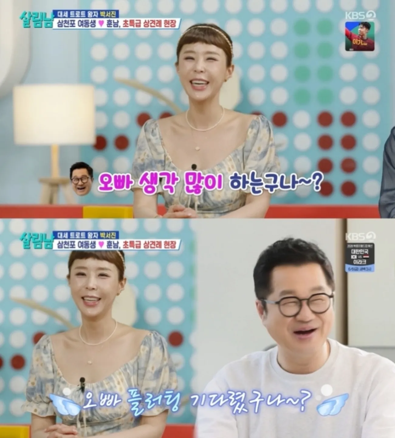 신지와 지상렬의 이색 케미는 방송 내내 화제를 모았다. 이날 방송에서는 박서진 동생의 로맨스 장면을 본 신지가 “누군가 나를 챙겨주면 정말 행복하죠”라고 말하자, 백지영이 “어떻게 그렇게 잘 알아?”라며 지상렬과의 비공식 러브라인을 짚어 웃음을 자아냈다. 신지는 “저게 상렬 오빠였으면 ‘혀 씹어서 피 나냐’고 했을 것”이라는 위트 있는 발언으로 ‘상렬어’를 완벽히 구사하며 현장을 초토화시키기도 했다.