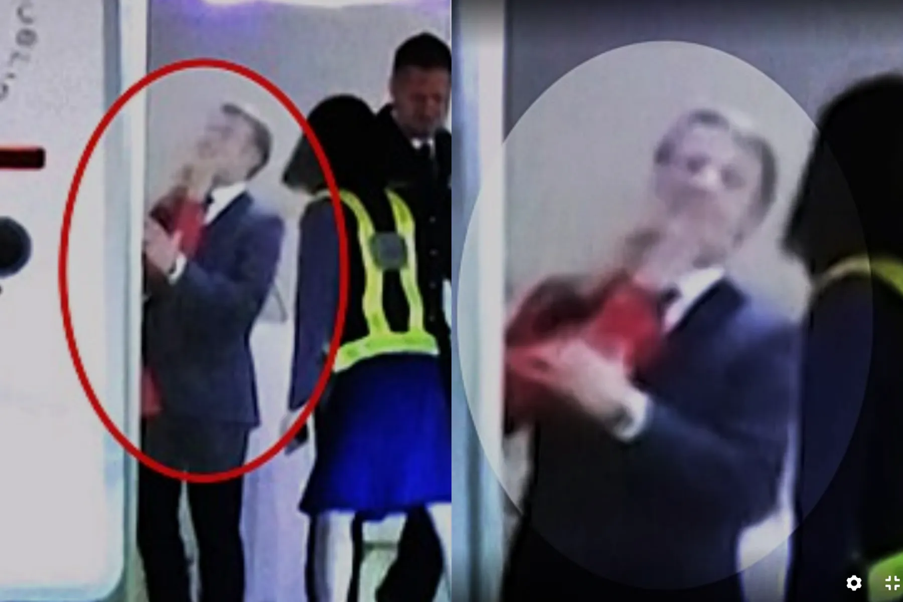 논란의 영상은 미국 AP 통신이 촬영했다. 영상에는 전용기 문이 열리자 마크롱 대통령이 모습을 드러내고, 곧이어 붉은 소매를 입은 누군가가 대통령의 얼굴을 밀치는 듯한 장면이 담겼다. 마크롱 대통령은 순간적으로 뒤로 밀리며 놀란 표정을 지었지만, 이내 태연하게 손 인사를 하며 외부에 웃음을 지어 보였다. 그러나 이내 정색한 표정으로 전용기 안으로 사라졌고, 곧 다시 등장했다. 그 뒤를 따라 브리지트 여사가 모습을 드러냈고, 마크롱 대통령이 내민 팔은 외면한 채 계단의 난간을 잡고 내려왔다.