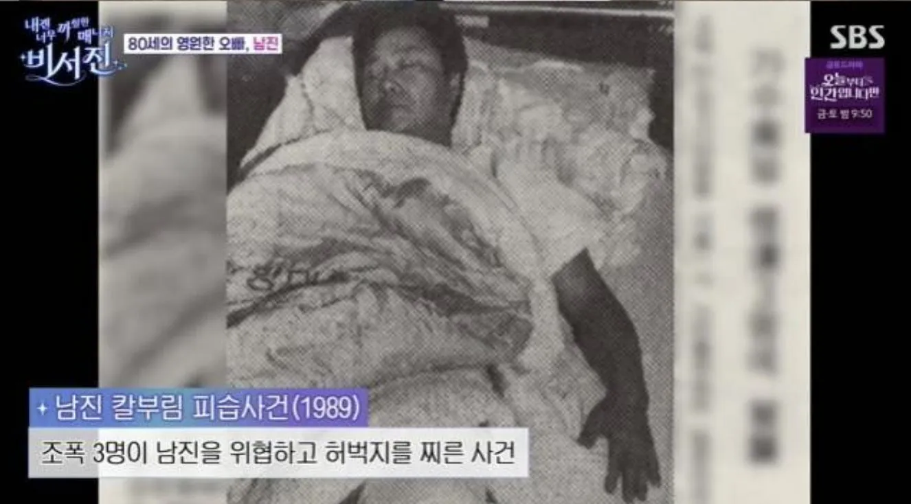 남진은 최근 방송된 SBS ‘내겐 너무 까칠한 매니저–비서진’에 출연해 데뷔 60주년 기념 전국 투어 근황과 함께 파란만장했던 인생사를 털어놓았다. 이날 방송에서 그는 자신의 인생을 바꾼 끔찍했던 순간을 담담하게 회상했다.
