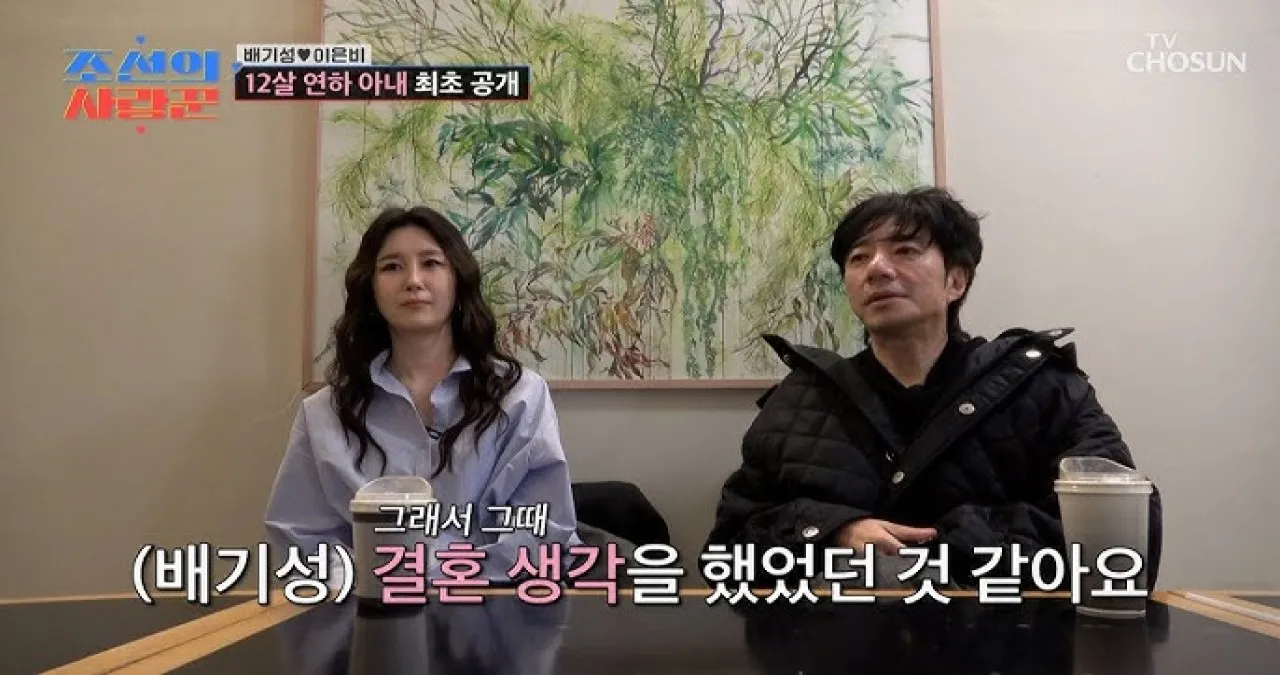 가수 배기성이 12살 연하의 미모의 쇼호스트 아내 이은비 씨와 방송에 동반 출연해 화제다. 두 사람은 식당에서의 우연한 첫 만남부터 3년간의 열애 끝에 결혼에 골인하기까지의 영화 같은 러브스토리를 공개해 시청자들의 이목을 집중시켰다. 특히 배기성은 아내와 결혼을 결심하게 된 특별한 계기를 밝혀 훈훈함을 더했다.