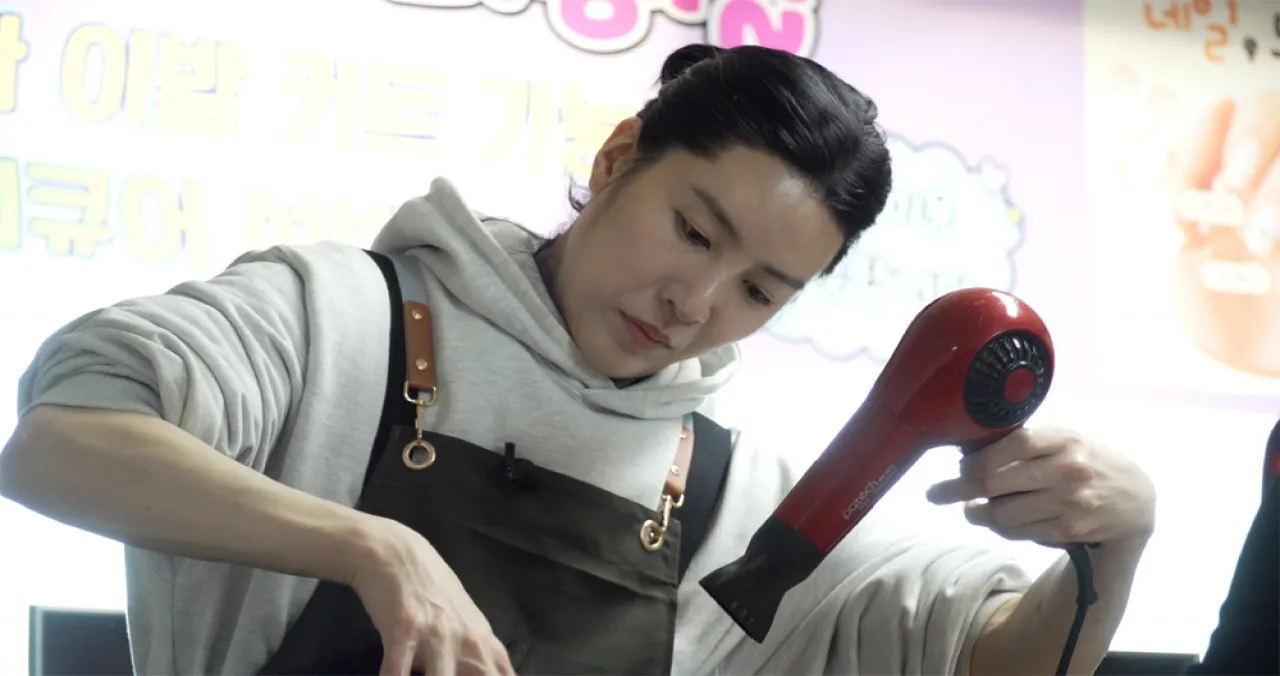 그는 마치 마법처럼 풍성해 보이는 스타일링을 완성해내 현장의 감탄을 자아냈다. 노민우의 활약은 여기서 그치지 않았다. 그는 어르신들의 피로를 풀어주는 시원한 두피 마사지까지 선보이며 마을의 최고 인기 스타로 떠올랐다.